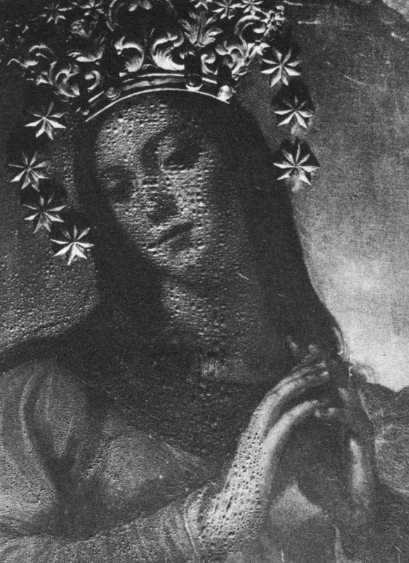 ** 당시 사순절에는 관례대로 이 성화를 보라색 천으로 덮어 놓았는데 앞에 있던 촛불이 쓰러지면서 천에 불이 붙어 작품이 훼손되었던 것이다.